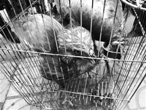 马警官赶到贺师傅家时,老鹰已经被关在了一个铁笼子里,它全身羽毛黄白相间,长约四五十厘米,两只爪子紧紧地抓着笼子,看到有人靠近就睁大眼睛警觉地张望着。