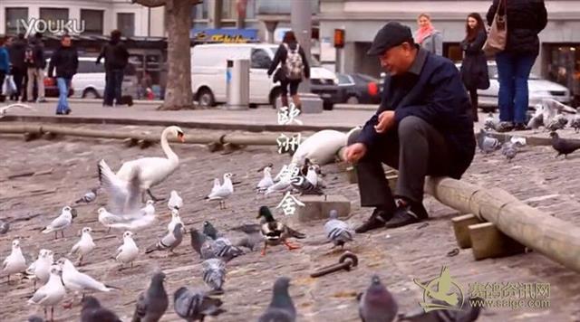 视频截图:欧洲街边的信鸽