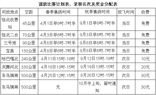 如所定日期有特殊原因,鸽会通过网站、短信和QQ群将训放和比赛时间通知大家。