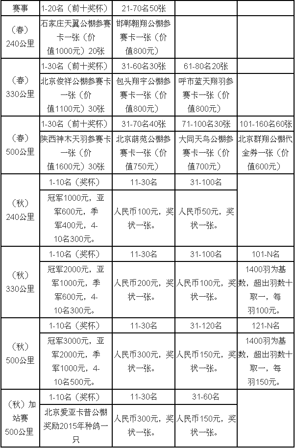 鸽会牛气章程:春赛奖310张参赛卡,秋赛奖种鸽