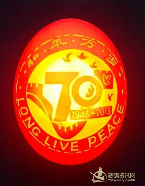 这件蛋雕作品中心为数字70与时间1945-2015,衬以长城图案组成的展现胜利的“V”字,上方为象征五大洲人民向往和平的五只展翅高飞的和平鸽,主图的周边是分别用中文和英文雕出的“和平万岁”字样,体现了庆祝中国人民抗日战争暨世界反法西斯战争胜利70周年的主题,表达了中国人民和全世界人民对世界永久和平的期盼。作品采用鸽子蛋壳为材料,也让人们更直观地联想到鸽子蛋——鸽子——和平鸽——和平。