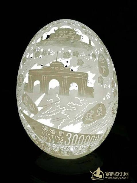 人民网北京9月1日电(记者蒋建科) 为纪念中国人民抗日战争暨世界反法西斯战争胜利70周年,著名蛋雕专家、陕西省工艺美术大师闻福良近日用了10天时间,在一枚薄如蝉翼的鸽子蛋壳上雕刻出一件蛋雕作品——《和平万岁》。