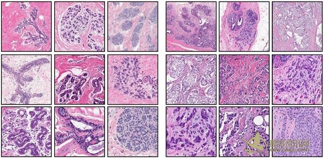 研究中使用的一些病理切片图片,病理图片中有大量繁复的细节。图片来自:参考资料1
