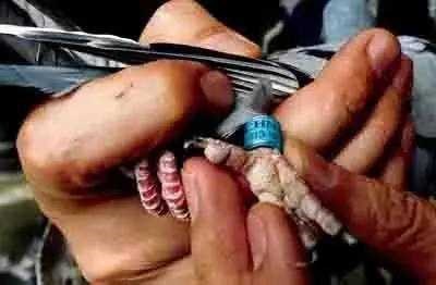 (信鸽的脚上佩戴着电子环,用以记录飞行成绩)