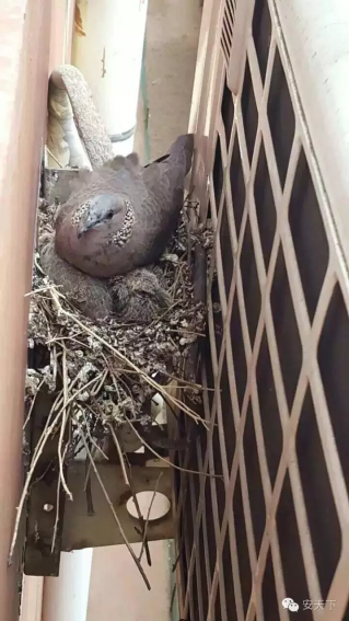 去年春末夏初的时候,一只野鸽子落户在了安阳市开发区一工厂内的空调室外机旁,并孵育出了小鸽子。厂子主人不忍打扰鸽子一家,在酷热难耐的夏季就一直没有开空调,并且,准备再重新安装一台空调。