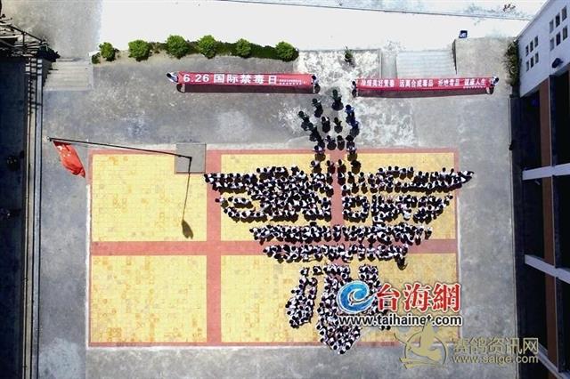 6月24日讯 (通讯员 苏皓晖 记者 郭钦转 文/图)你在“鸽子”头,我在“鸽子”尾,昨日上午,漳浦县佛昙中心学校操场上,300多名师生自发组成鸽子形状的禁毒图案,倡导群众远离毒品,健康生活。 该图图案是我国禁毒委员会的标志,外形是一只由“禁”字组成的和平鸽。 佛昙镇曾是漳州受毒品侵害比较严重的区域,近年来,随着警方打击及宣传毒品危害力度的加大,吸毒人员锐减,取得了明显成效。