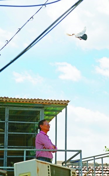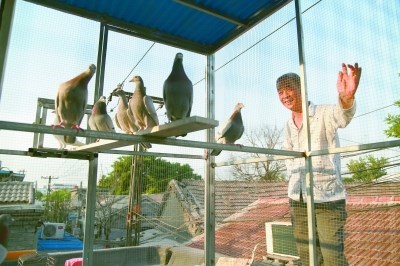 北京南城西园子巷子里的养鸽人看着自己新购买的鸽子,开心之情溢于言表。