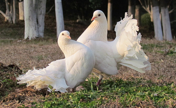 中国江苏网1月1日讯 孔雀开屏不奇怪,可鸽子开屏你见过没?在南京琵琶湖公园草地上,发现一男子在溜着4只鸽子,鸽子先后摆出美丽的开屏造型,让不少游客小朋友和家长过足眼瘾,啧啧称奇。据男子介绍,这鸽子是进口德国的,是一位朋友送的,每只近千元。扇尾鸽又名孔雀鸽、芭蕾鸽。该鸽的特点是,头部后昂或贴后背,胸部较突出,嗉囊圆而大,两翅下垂,尾羽时常展开,好似孔雀开屏。一般的鸽子尾羽有12根羽毛,而扇尾鸽的尾部则有36根羽毛以上。扇尾鸽有黑、蓝、红、黄、白等颜色,其中以白色最受人们的青睐。扇尾鸽体态轻盈,走起路来常常脚尖着地,摇头摆尾,像舞蹈家在表演芭蕾舞。