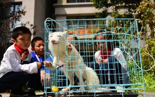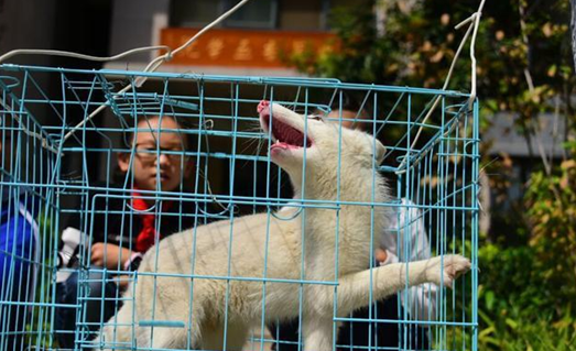 一市民到楼顶给鸽子喂食时,意外地发现了一只饿急了的北极狐,经过一番折腾,北极狐被“擒获”,目前已送至郑州市林业局野生动物救护站。 9月10日早上,家住郑州高新区中鸿花园2号楼22楼的居民秦新立,到楼顶给鸽子喂食时,发现一只白色的“小狗”,正围着鸽笼转悠,吓得笼内的鸽子“咕咕”直叫。秦新立起初以为是只流浪狗,想上前驱赶,到跟前仔细一看,竟是一只狐狸。看着狐狸要攻击自己,他赶紧打电话叫来两位朋友帮忙。狐狸一看有人过来,撒腿就朝楼梯口跑,后被秦新立和其两位朋友堵住去路。为了捉住这只狐狸,三人决定来个“瓮中捉鳖”,他们先将两个楼层的步梯安全门关上,然后从家里拿来一个铁笼子和火腿肠。打开笼门,用火腿肠进行引诱。也许是饿极了,该狐狸三下两下就将两根火腿肠吃光,却不肯进入笼中。三人驱赶了多次,生性狡猾的狐狸始终不肯就范。随后,秦新立等人又找来一根长棍子,棍子头上绑着一个绳圈,几经努力,终于套住了狐狸的脖子,成功将其“请”进铁笼子里(如图)。 因担心把狐狸放在家里会伤到孩子,加上其身上散发出的刺鼻腥臊味,秦新立只好将其转放到东史马村的朋友吴明辉的小院里暂养。同时,他拍下照片发到朋友圈,让大家帮忙寻找饲养狐狸的主人。然而,一天过去,没人来认领。昨日上午,他只好向记者求助。 昨日上午11时,记者在东史马村安置小区,见到了铁笼子里的狐狸。郑州市林业局野生动物救护站的董朝伟站长说,这是一只北极狐,从其灰暗的毛发和消瘦的体形来看,该狐应该在外流浪多日了,很可能是被人当成宠物饲养,后被遗弃或乘主人不备逃出来的,也有可能是从养殖场里逃出来的。“北极狐是犬科动物,牙齿锋利,生性狡猾,脾气也暴躁,同时还会携带病毒病菌,希望市民不要在家中饲养,一旦被咬伤,要第一时间打狂犬疫苗,以免意外发生。” 目前,北极狐已被送至郑州市林业局野生动物救护站暂时喂养。