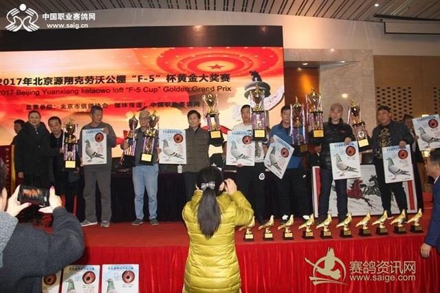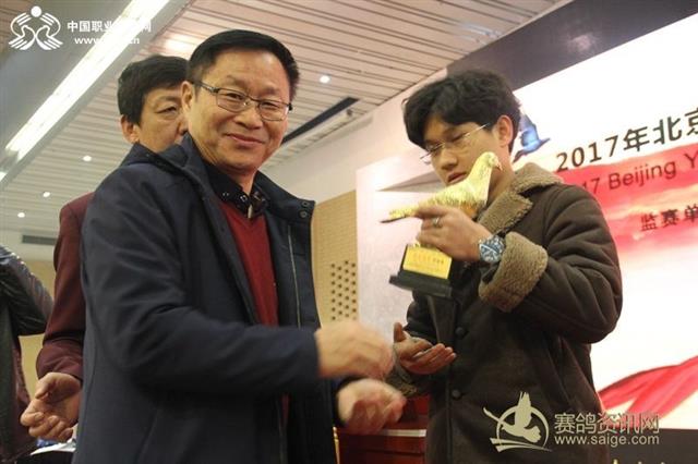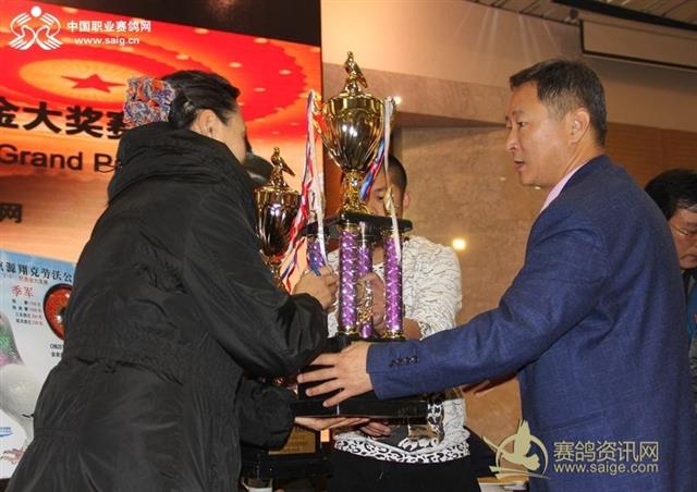源翔克劳沃公棚董事长贾岩为获奖鸽友颁奖