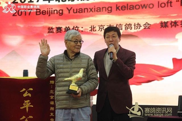 源翔克劳沃董事长刘乃刚为获奖鸽友颁奖