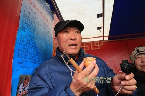 图为何永江正在展示鸽哨 约图记者杨益 摄/王冉
