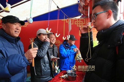 “红墙黄瓦老皇城,灰墙灰瓦四合院,豆汁焦圈钟鼓楼,蓝天白云鸽子哨。”在老北京人心里,这描述的就是原汁原味儿的北京城,尤其是那回荡在四合院上空清脆的鸽子哨声,更是成为北京人心中地道的“北京声音”。如今这脆亮的鸽子哨声在北京地坛春节文化庙会的一隅划破长空,在一片喧闹中显得格外分明。