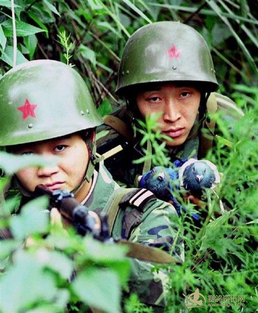 在和平年代,军鸽一直忠实地履行着蓝天信使的职责,在关键时刻准确传递信息。图为带鸽潜伏,用军鸽传侦察情报。