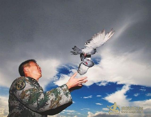 现代社会,军鸽挽救了许多生命财产。一次,祁连山山洪暴发,毁坏了通讯设施,正是因为军鸽千里送信,才使当地52个县的民众躲过了灾害的袭击。图为生疏地域放飞训练。