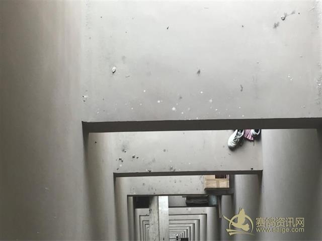 从通风窗口往下望,每个层面平台上都有散落的鸽粪。