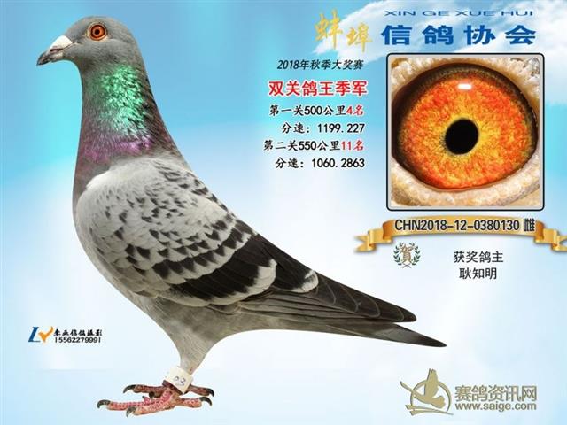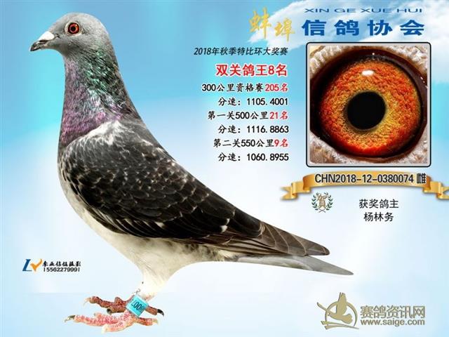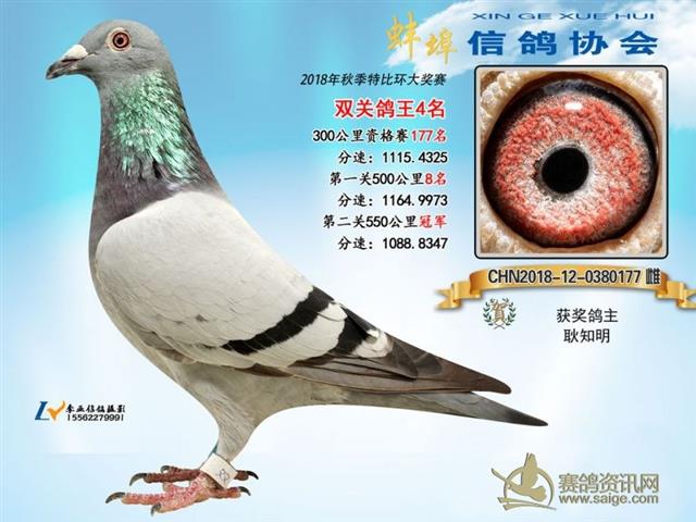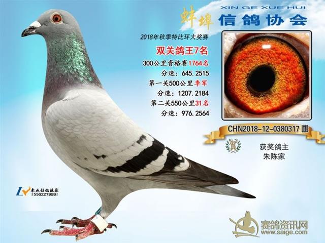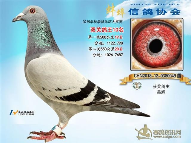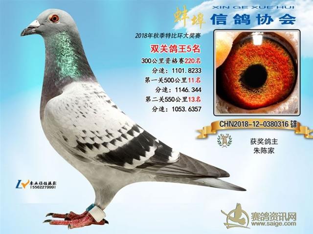 2018年秋季,蚌埠市信鸽协会特比环“双关鸽王”大奖赛经过300公里资格站,500公里首关赛,至550公里决赛,现已圆满完成整个赛事,按照特比环竞赛规程(及补充说明),现就30名“双关鸽王”拍卖鸽靓照予以展示。具体拍卖规则及时间另行通知。 前十名获奖鸽欣赏: