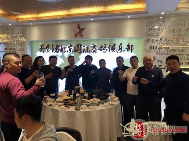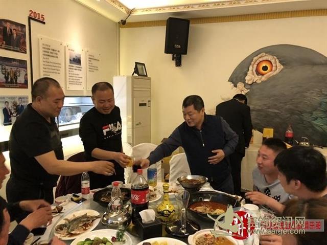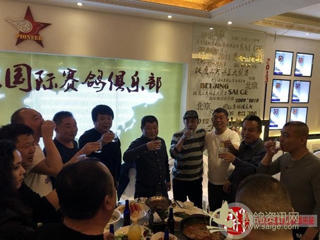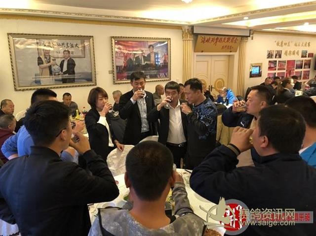 开创者国际赛鸽俱乐部的魏主任带领竟翔部门负责人一起给鸽友敬酒