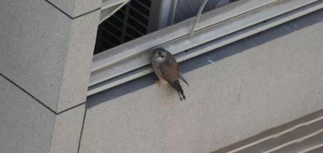“其实这是红隼,是一种猛禽,我国二级保护动物。”这只红隼最爱待的地方,就是像刘先生家这栋居民楼的14层至19层的空调室外机上。