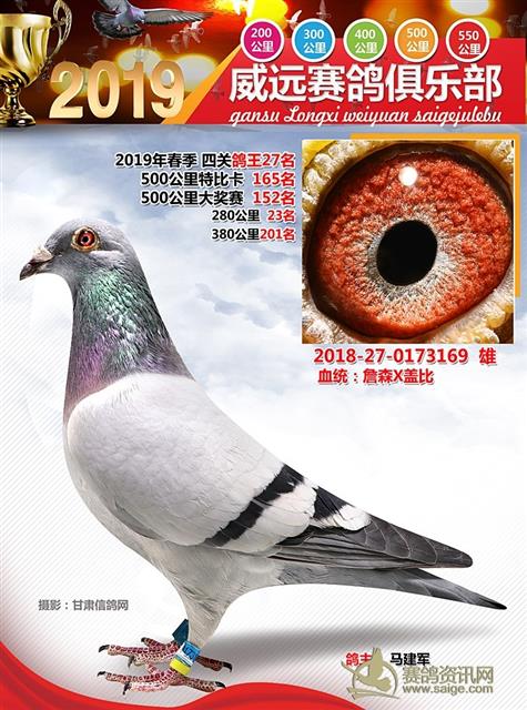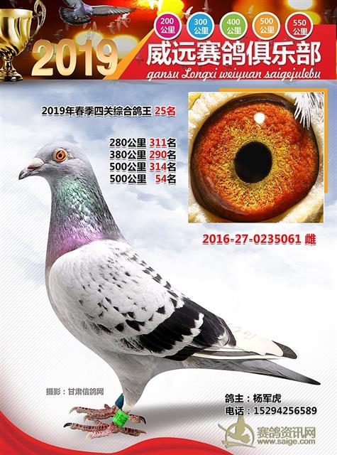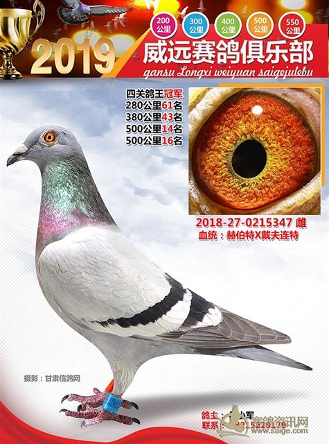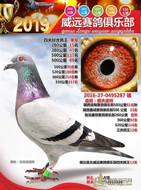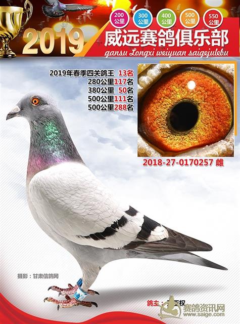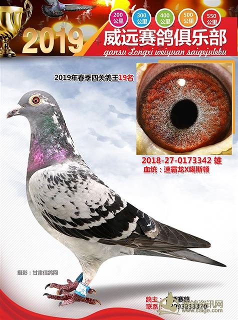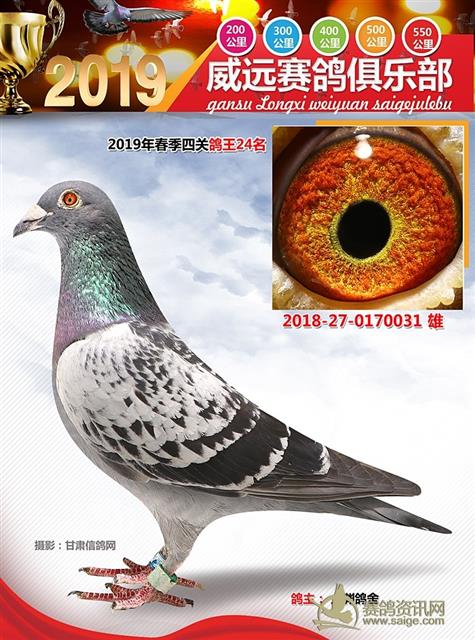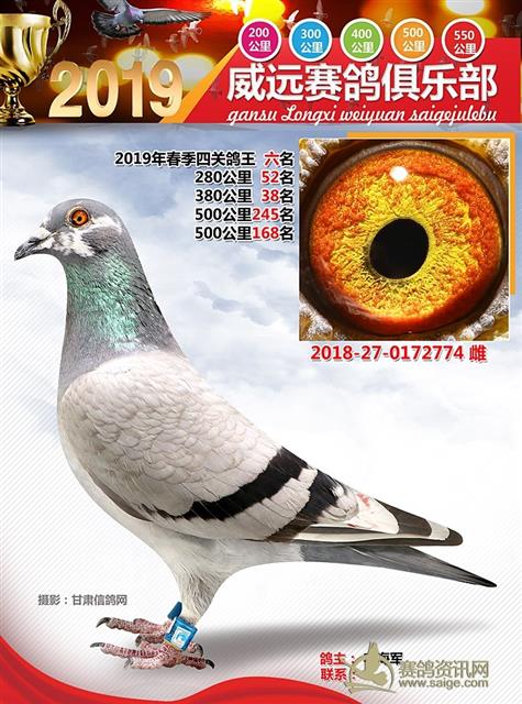 陇西威远赛鸽俱乐部2019年春季4关鸽王