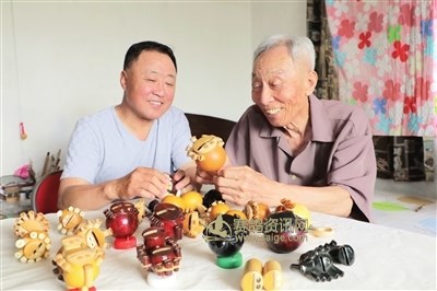 李印强和父亲讨论鸽子哨制作