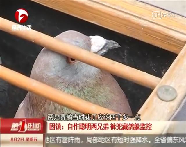 安徽蚌埠市固镇县两兄弟自作聪明偷赛鸽,裤兜藏鸽躲监控。 以下是视频截图: