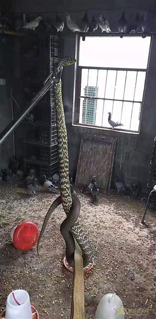 2米大蛇藏身鸽笼独享“霸王餐”