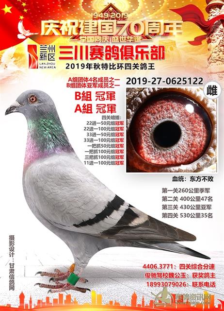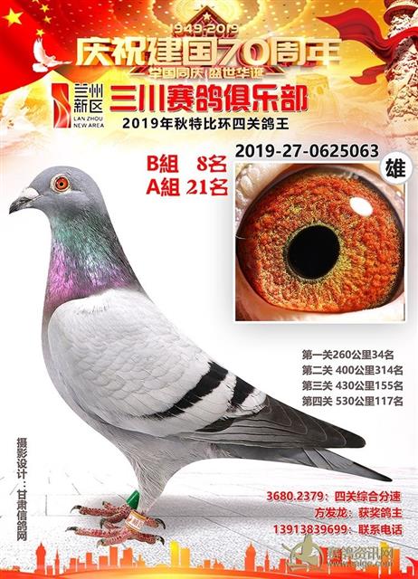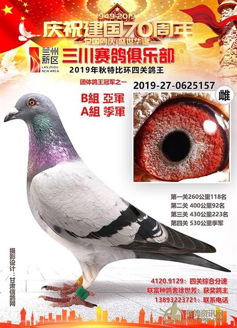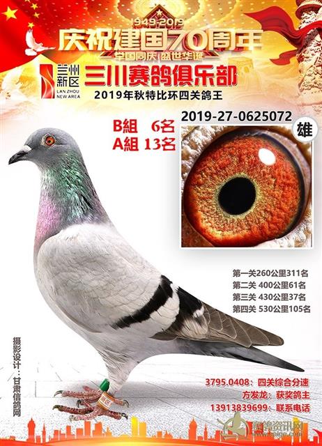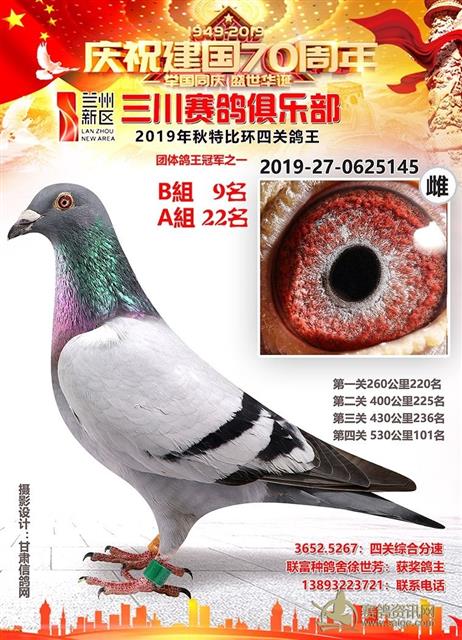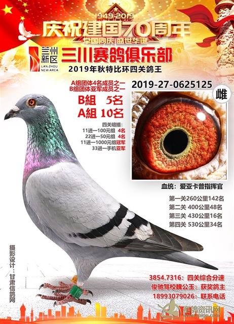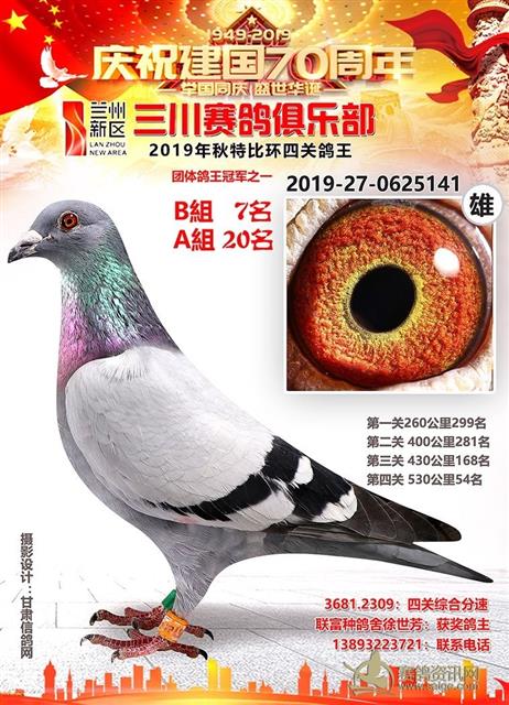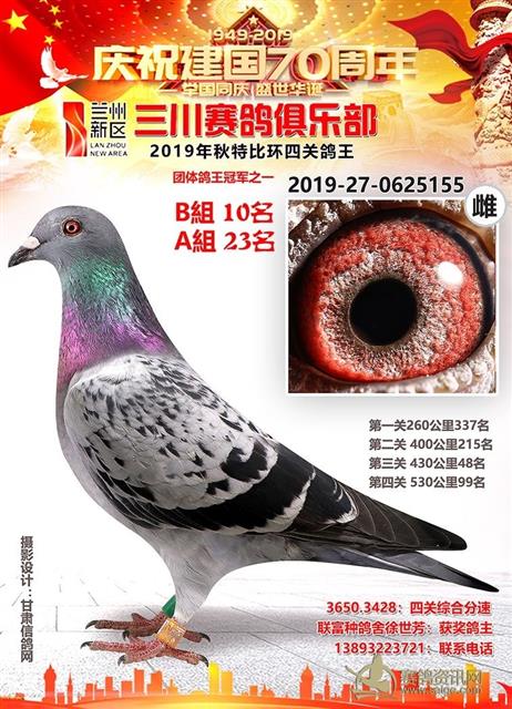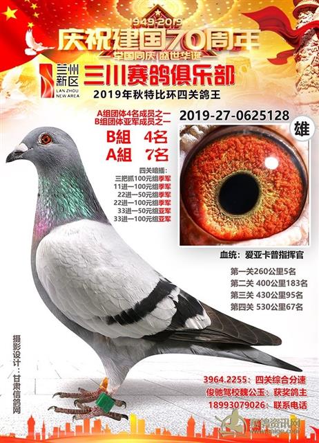 兰州新区三川赛鸽俱乐部2019年特比环鸽王AB组前十名获奖鸽