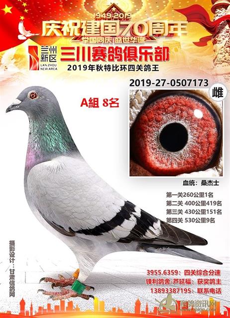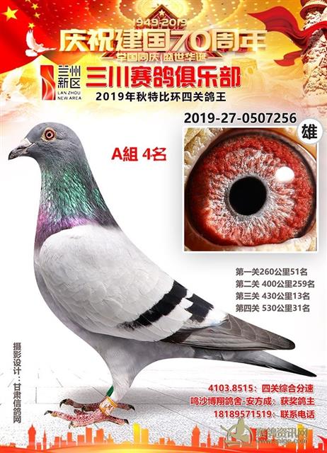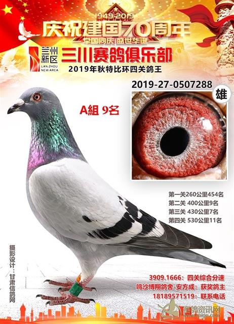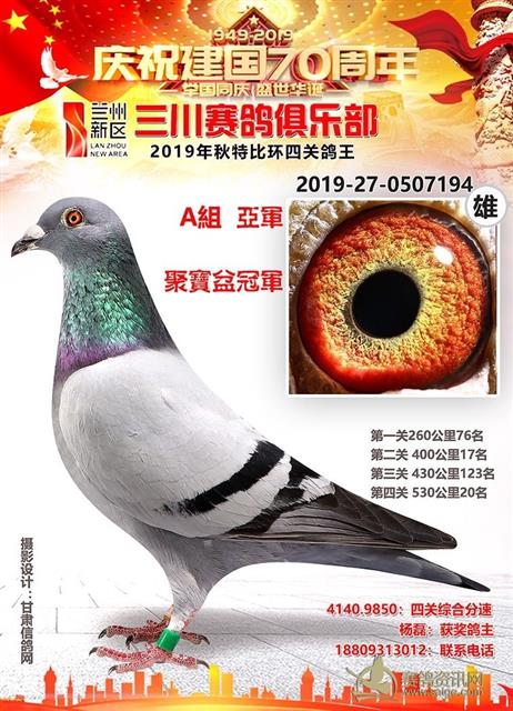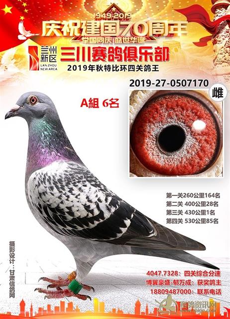 兰州新区三川赛鸽俱乐部2019年特比环鸽王A组前十名获奖鸽
