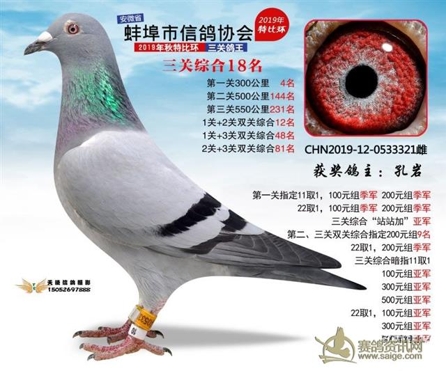 蚌埠信鸽协会2019年秋特比环“三关鸽王”前30名拍卖鸽