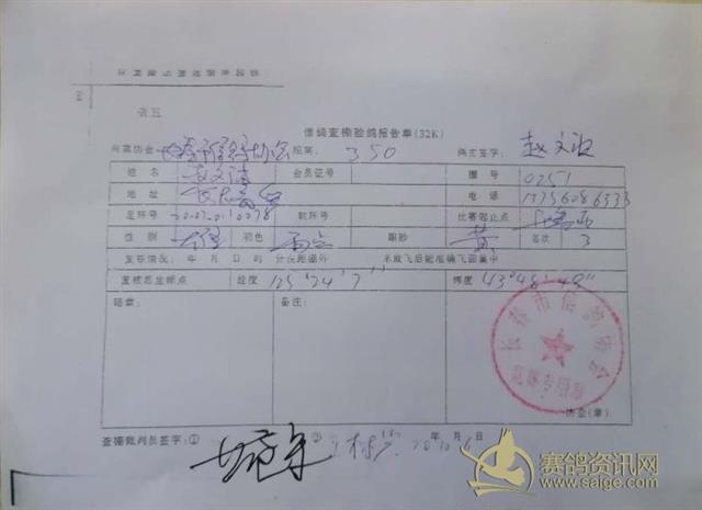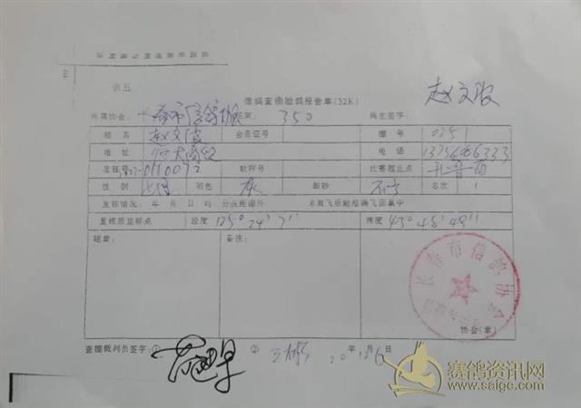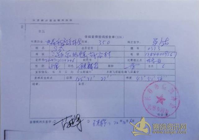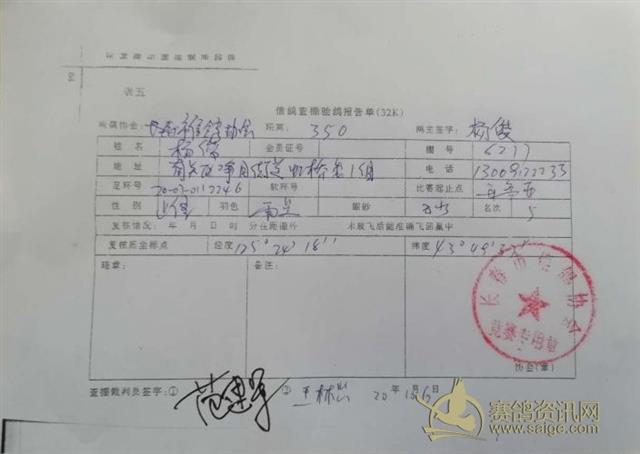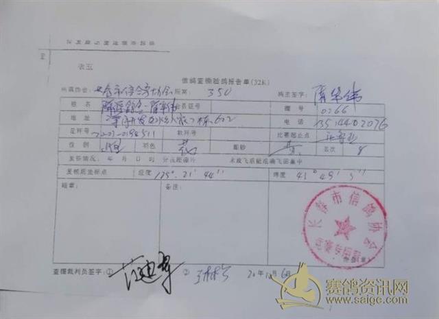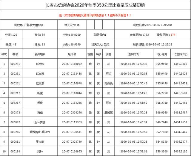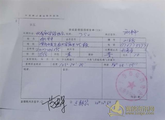 2020年长春市信鸽协会秋季350公里比赛前十名验鸽