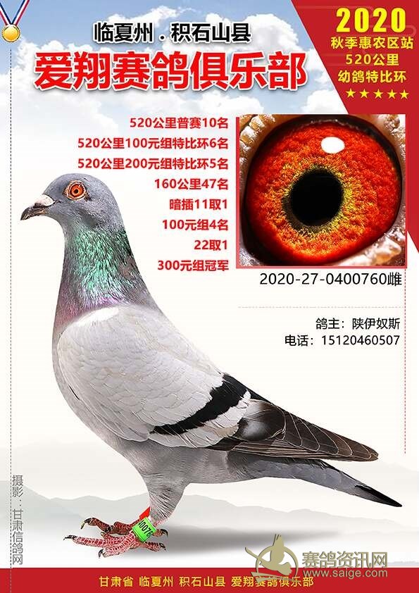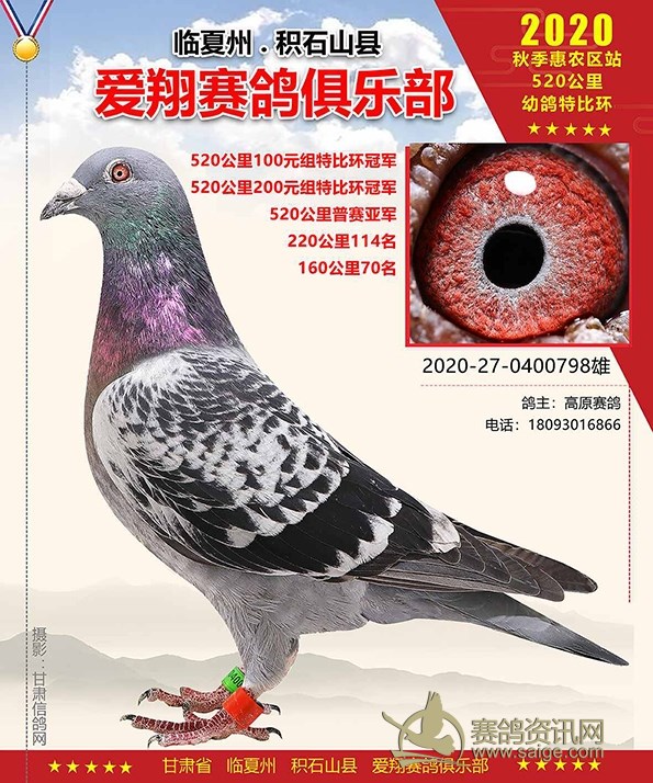 积石山县爱翔赛鸽俱乐部2020年秋季520公里特比环前十名获奖鸽欣赏