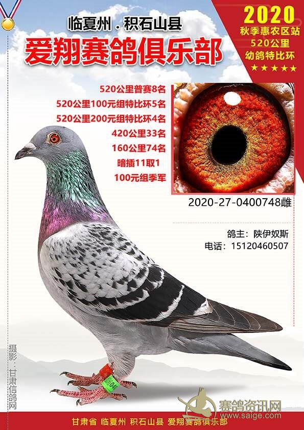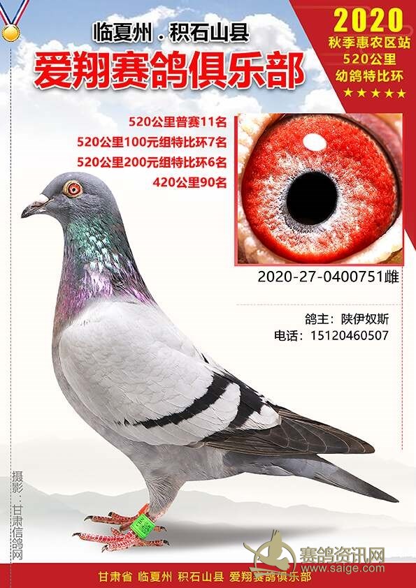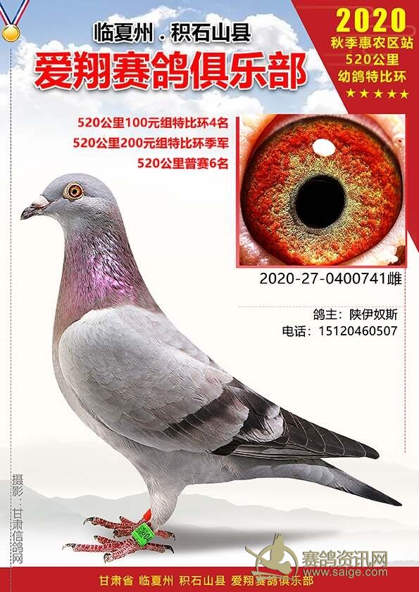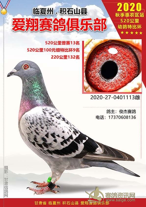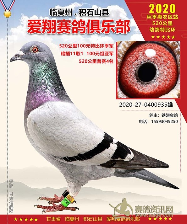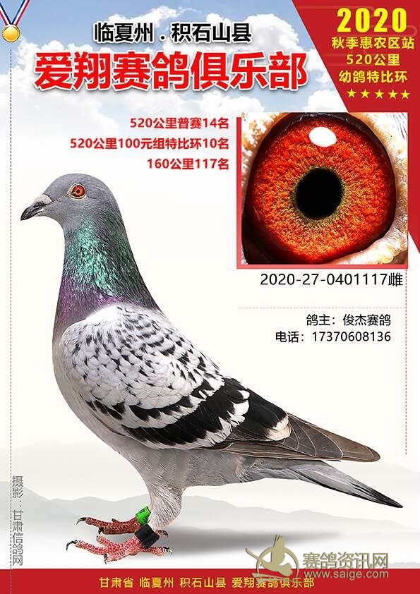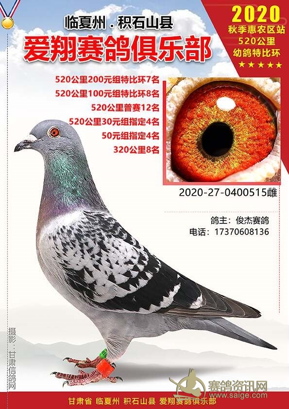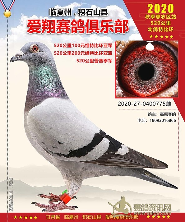 积石山县爱翔赛鸽俱乐部2020秋特比环前十名获奖鸽欣赏
