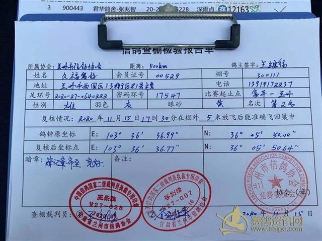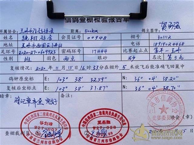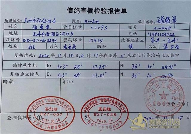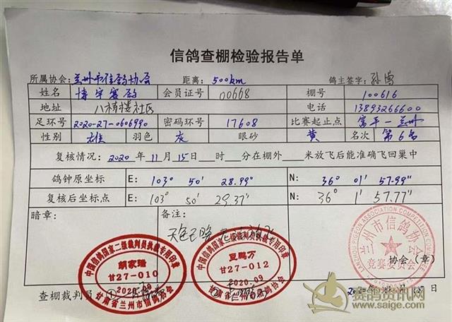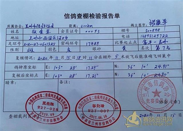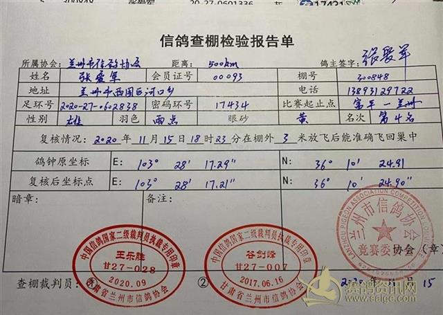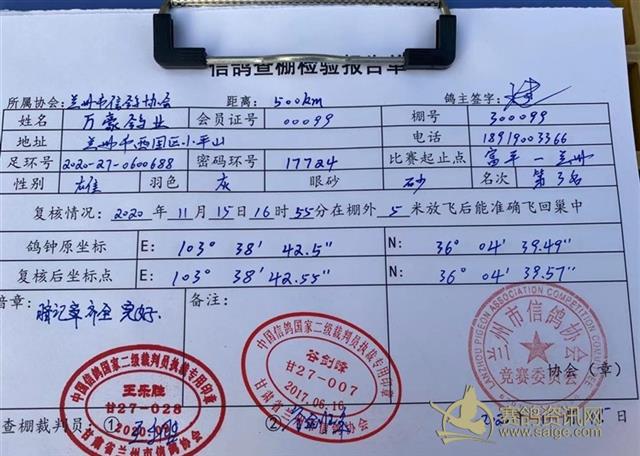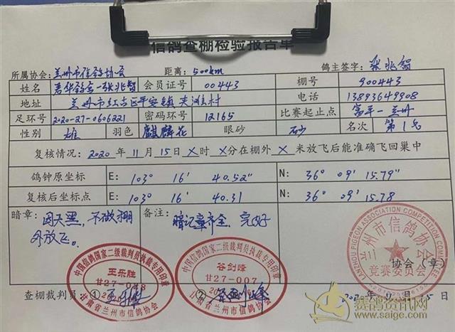 兰州市信鸽协会500km富平第四关决赛验棚