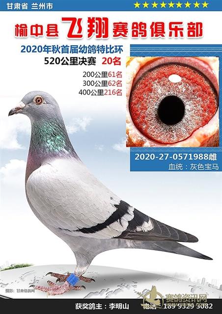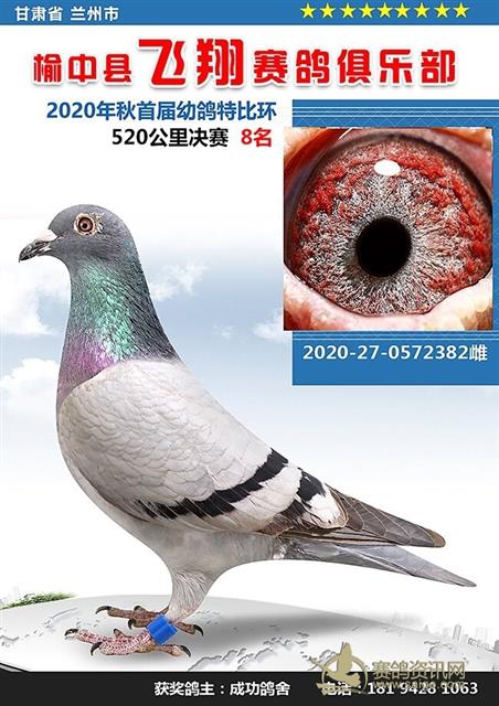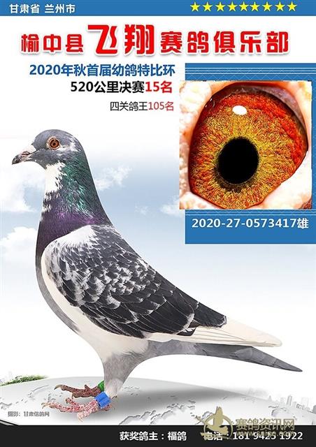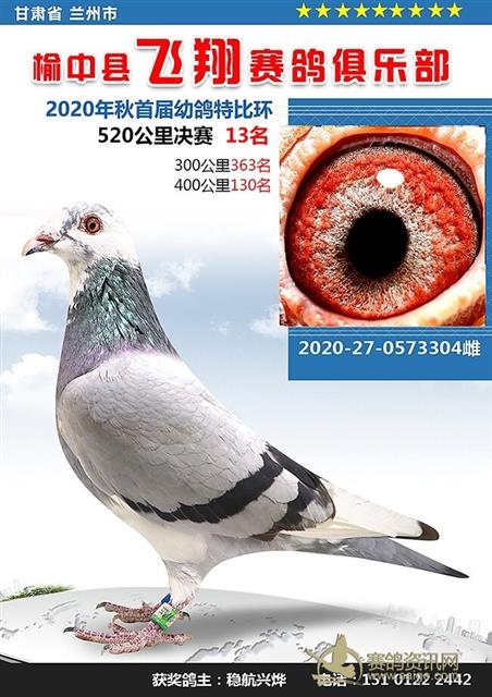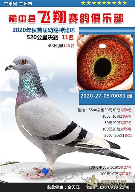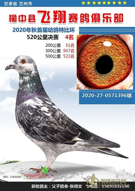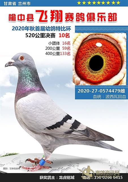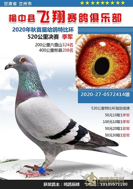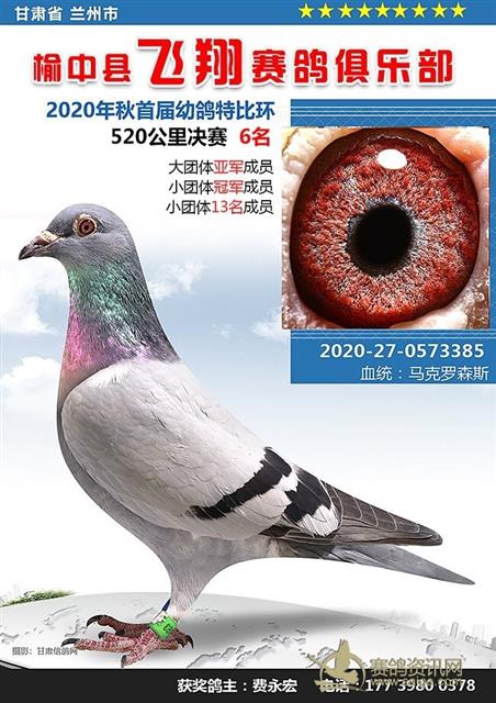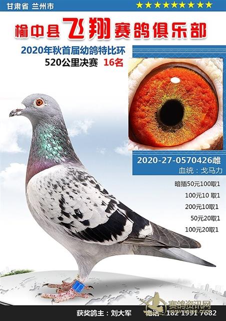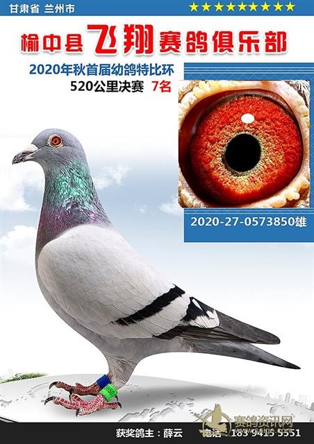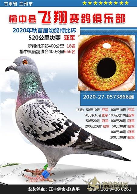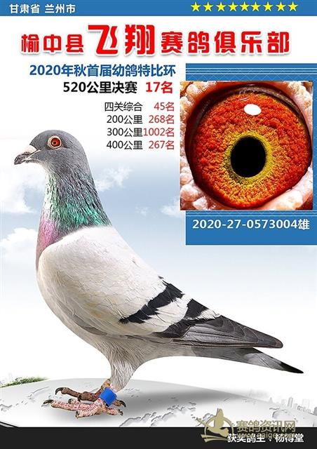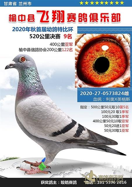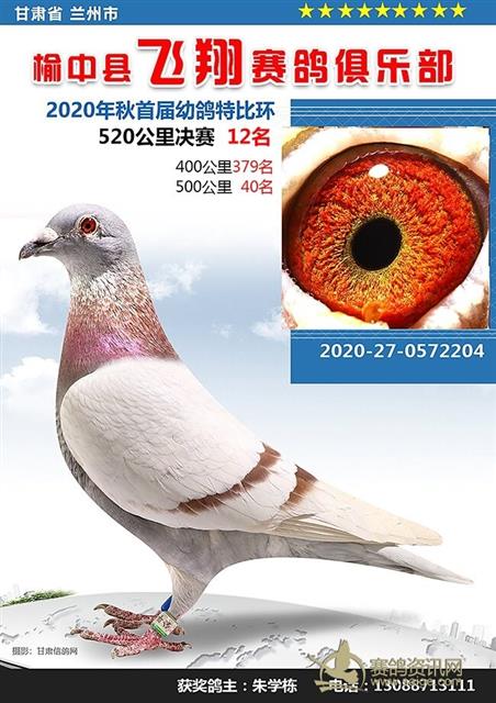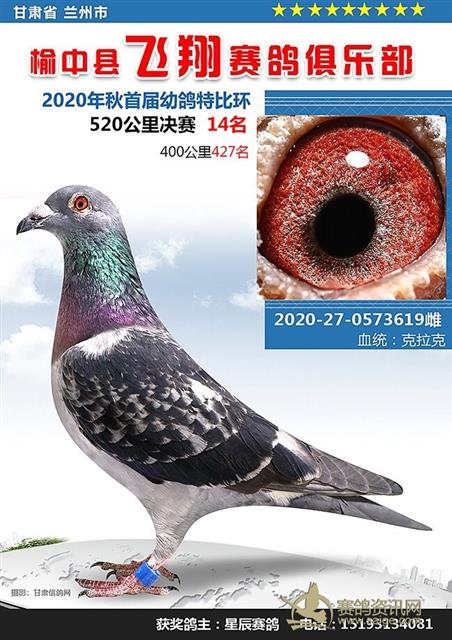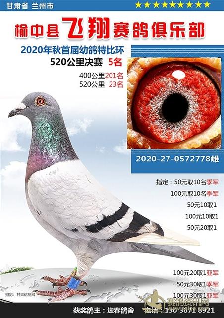 榆中县和平镇飞翔赛鸽俱乐部2020年秋季首届幼鸽特比环520公里决赛前20名获奖鸽