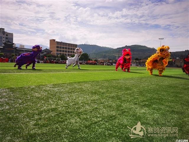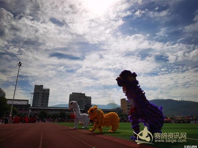 图为文武学校表演舞狮