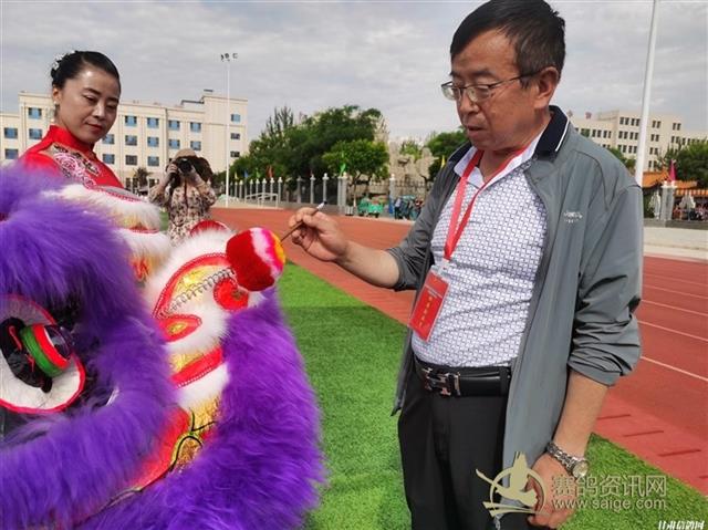 图为现场领导为狮子“点睛”