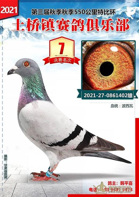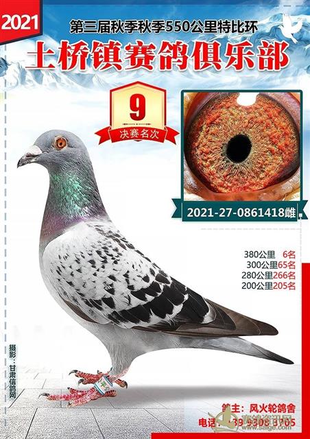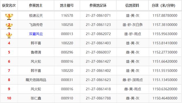 土桥镇赛鸽俱乐部2021年秋季特比环前十名获奖鸽