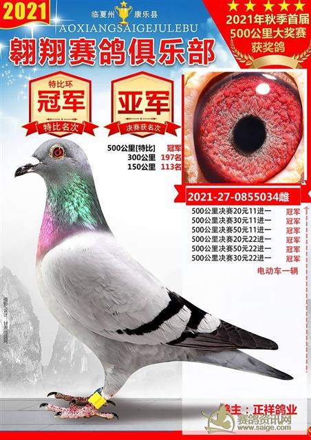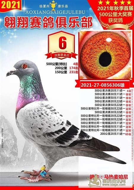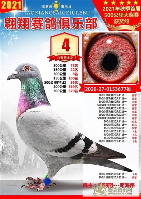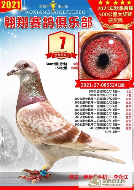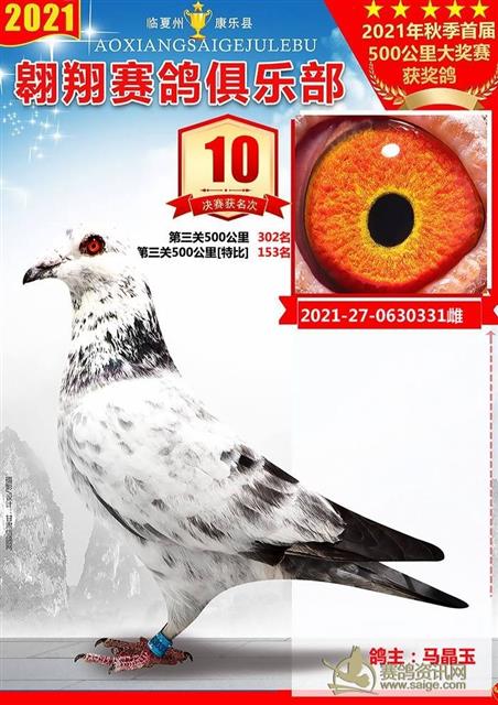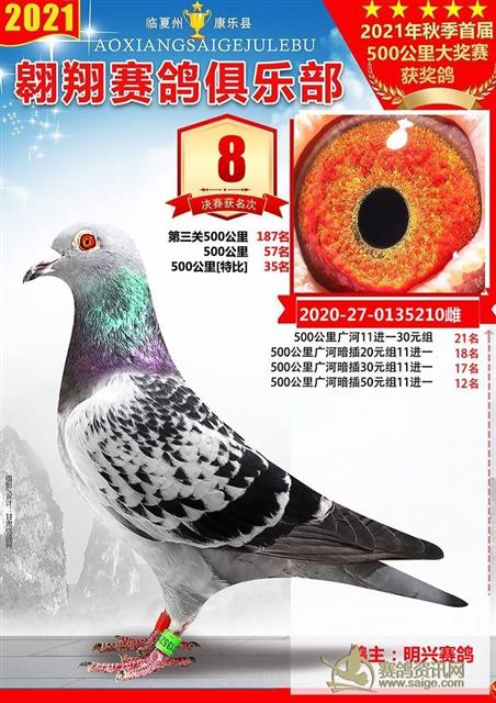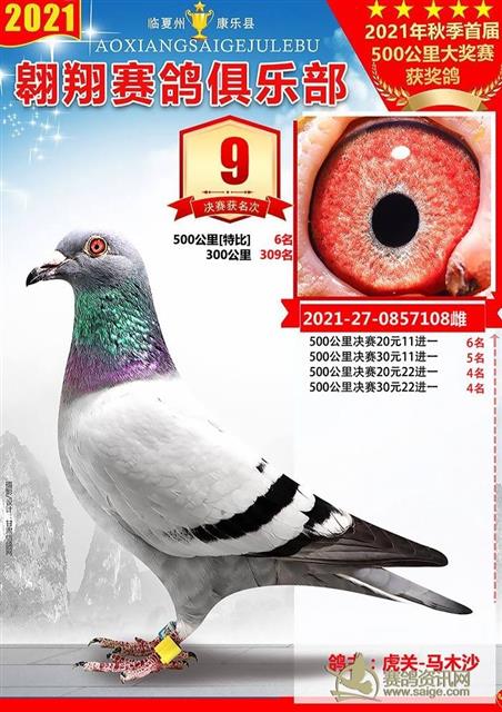 康乐县翱翔赛鸽俱乐部2021年秋季首届500公里大奖赛前十名获奖鸽欣赏