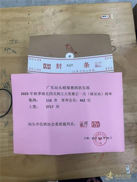 广东汕头市顺翔俱乐部2025年秋季南北四关鸽王赛正一关上笼明细