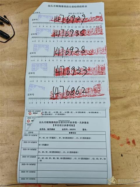 黄光强+林澄圳 2025-19-1474354团 正一关A1亚军,缴费5A2亚军 验鸽图片