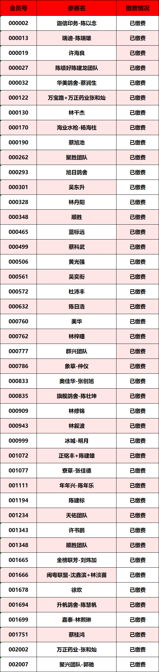 广东汕头市顺翔俱乐部2025年秋季南北四关鸽王赛正三关缴费明细