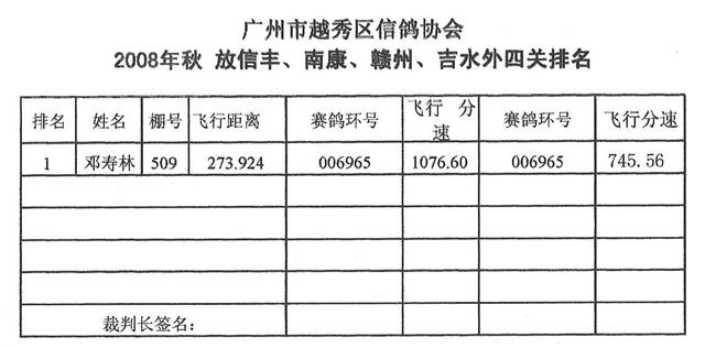 2008秋_越秀鸽会_信丰_南康_赣州_吉水外四关排名