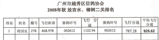 2008秋_越秀鸽会_放秋水,樟树二关排名