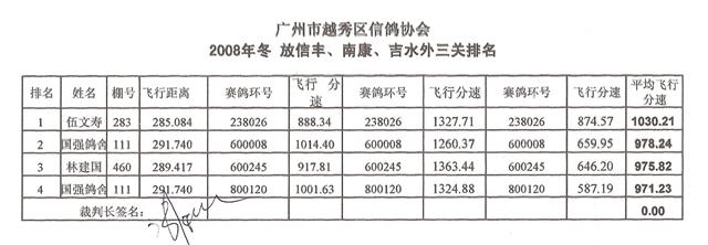 2008冬_越秀鸽会排名_信丰_南康_吉水_外三关