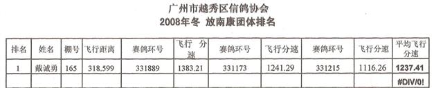 2008冬_越秀鸽会排名_南康