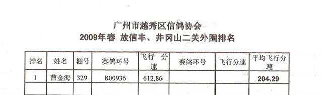 越秀区信鸽协会——09年春放信丰、井冈山二关外围排名