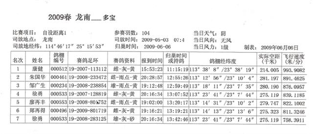广州市越秀信鸽协会——09年春龙南——精英、多宝、棚号、花抽