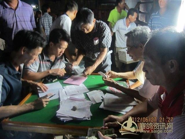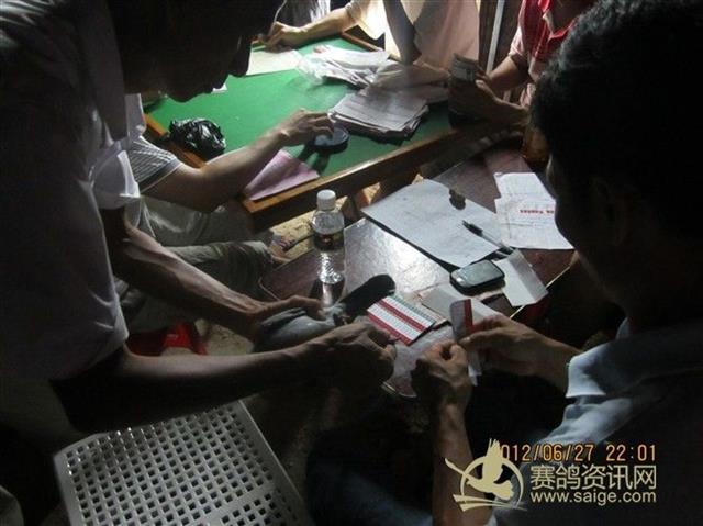 2012年“三关综合争霸赛”第一关决赛琼海站今天晚上8:00-11:00分在鸽会集鸽,全鸽会集鸽羽数共计:659羽,明天早上在琼海市地区开笼,愿各位鸽友的赛鸽第一关取得好成绩! 集鸽现场