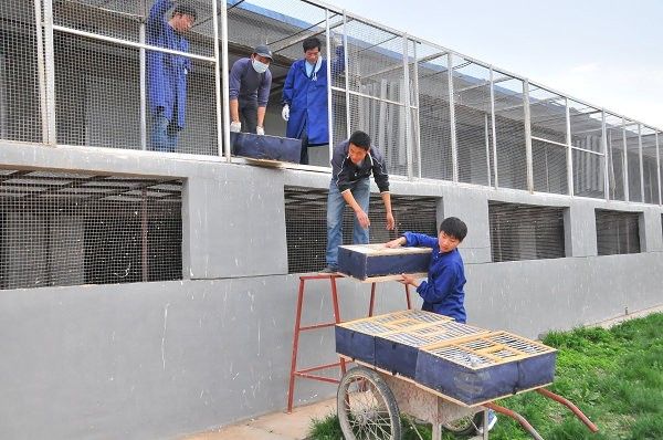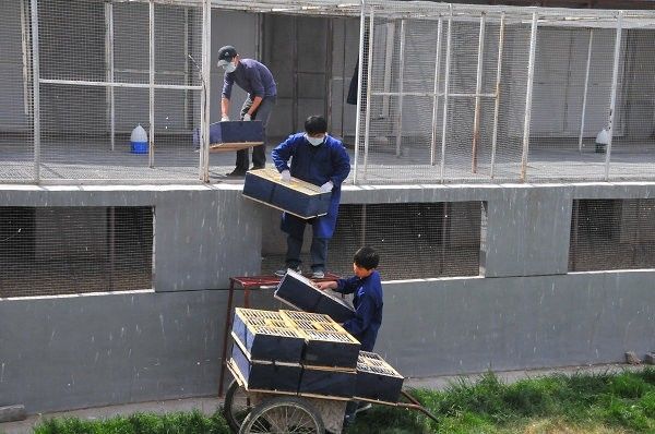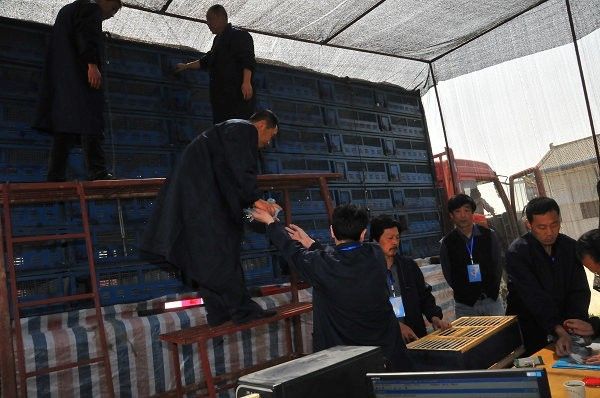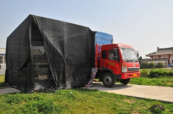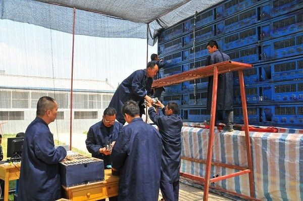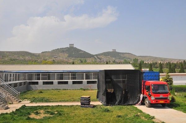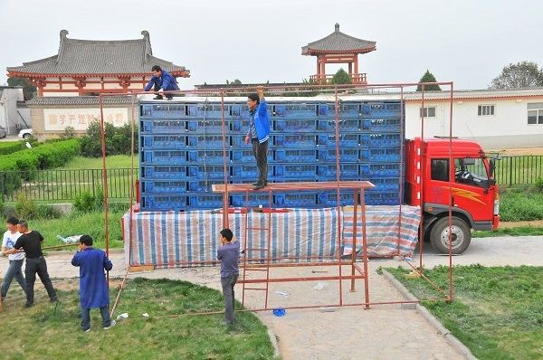 集鸽车已经准备好,为防止冒笼公棚特别搭建嗮网。